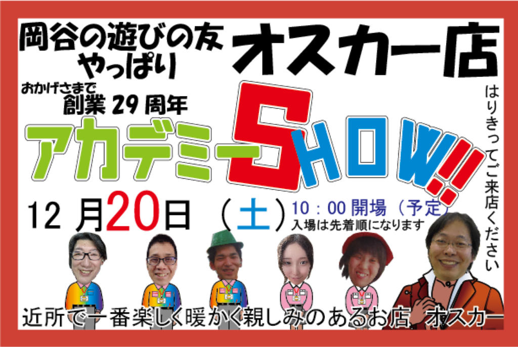 店名の名の通り、お客様に更なる楽しい時間をお過ごしいただくためにスタッフ全員が、楽しい役者となって、パチンコ業界で一般的な画一化されたサービスとは一線を画し、独自の接客サービスを提供しています。毎月行われる、スタッフがそれぞれの映画の衣装に身をまとい、いつも以上の演技演出で楽しませるアカデミーショーは、オスカーの名物企画となっています。